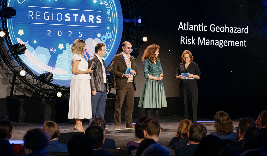 O projeto AGEO – Atlantic Geohazard Risk Management, apoiado pelo Interreg Espaço Alântico, venceu o Prémio REGIOSTARS 2025 na categoria “Uma Europa Verde” e foi também selecionado pela Escolha do Público!