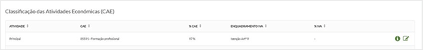 Com esta alteração, o registo da sua entidade passa para o estado “Requer atualização pela entidade”, sendo necessário completar a informação associada a cada CAE.